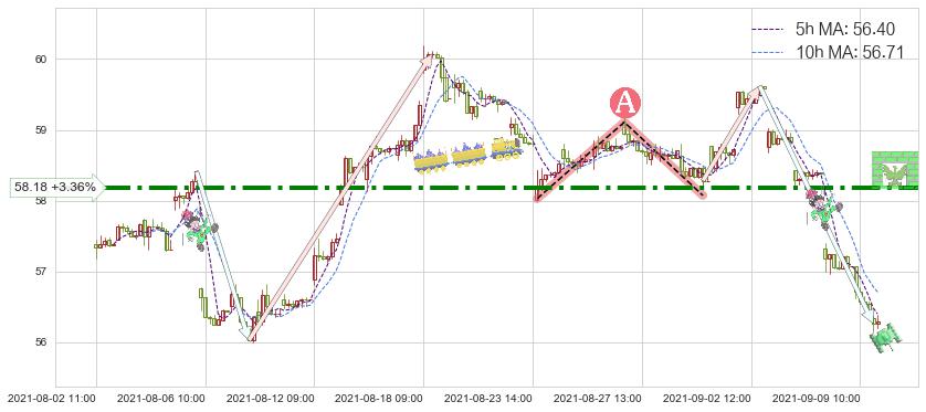 2021-08-31: 第一阻力位58.18有效抑制了下跌浪,成功阻止了价格的继续下跌。