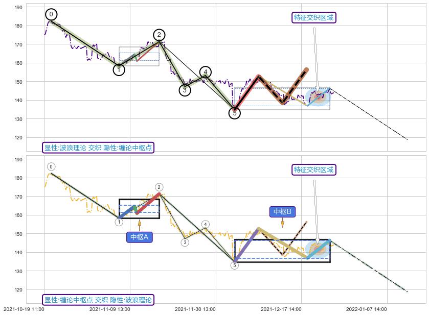 ➢ 波浪理论与缠论中枢点信号事件周期长度级别相同,同周期信号事件