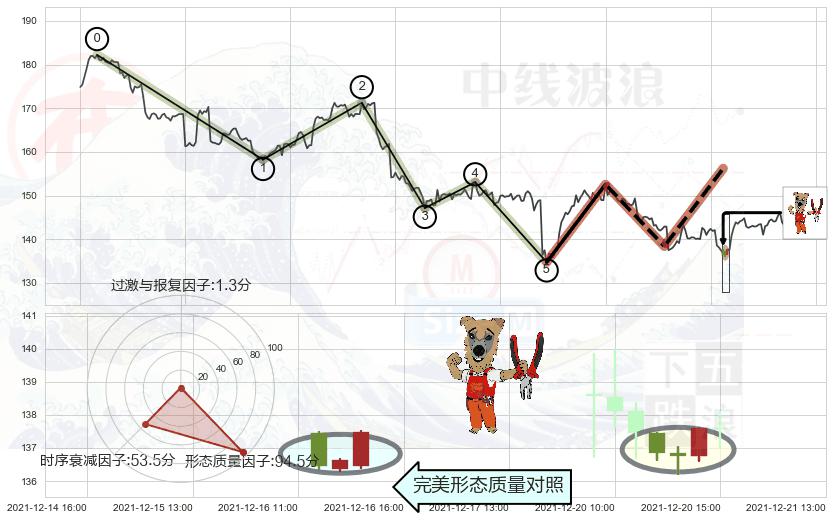 从2021-12-15 09:00至2021-12-21 15:00,共包含37个小时,阶段股价上涨5.33%,阶段股价变动位移路程比: 1 : 4