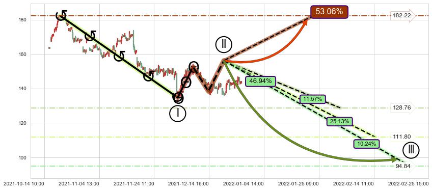♘ 阻力价格位171.19,可信任强度73.42%,距离最后交易2021-12-27 15:00形成的收盘价格143.77相差 +19.07%