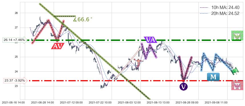 ➣ 【已确认突破】最后价格:24.32与最小【整理】第一目标价格→(09-15:10: 22.45 )相较: 下跌空间【中等】