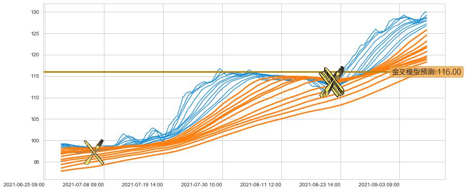 📈 多条均线基于【金叉历史模型】预测最高波峰价格的平均值: 116.00