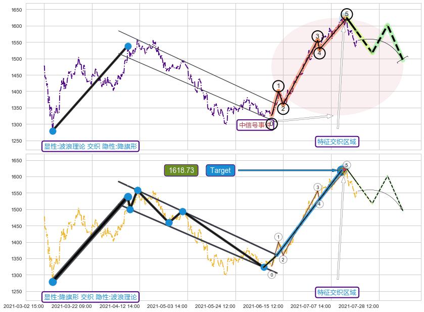 ➢ 波浪理论属【中级别信号事件】降旗形属【长级别信号事件】中长周期组合信号事件,中长事件长度比38.09%
