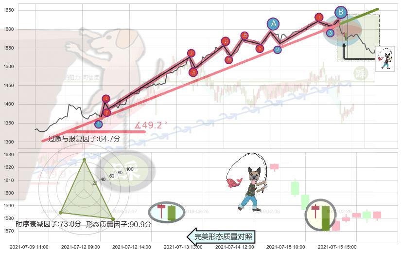 ➣ 2021-06-10 09:00-2021-07-15 09:00上升趋势存在反转[风险],其原上升趋势的支撑位(1653.21)已破位[强阻力信号],原上升趋势角度: 49.2˚