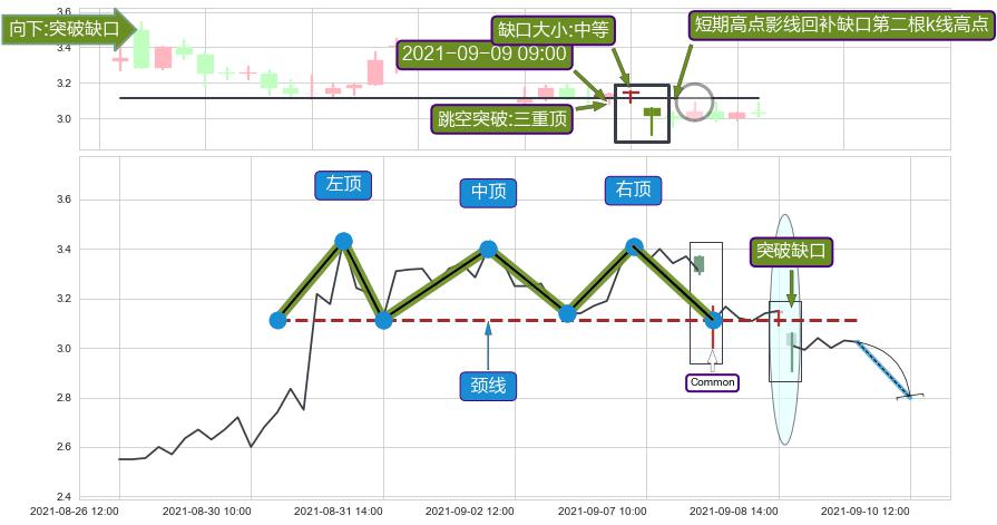 ➢ 【卖1】: 激进型 卖点→(09-08:09: 3.115 )形成突破三重顶【反转】形态