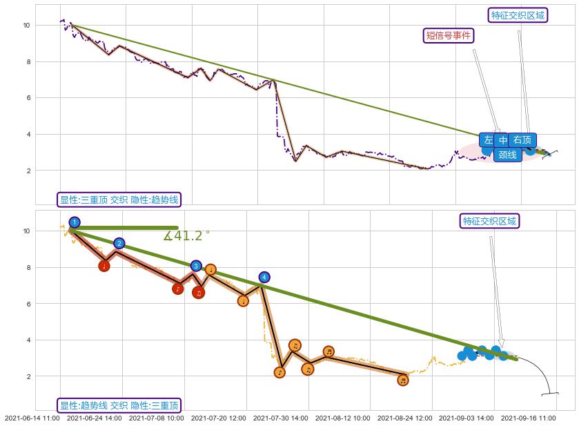 ➢ 三重顶属【短级别信号事件】趋势线属【长级别信号事件】长短周期组合信号事件, 短长事件长度比13.18%