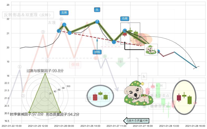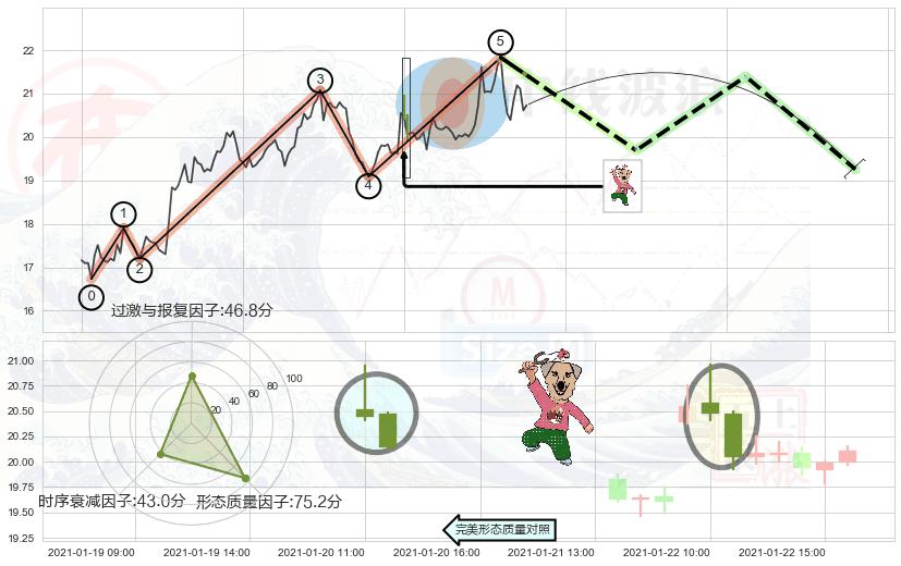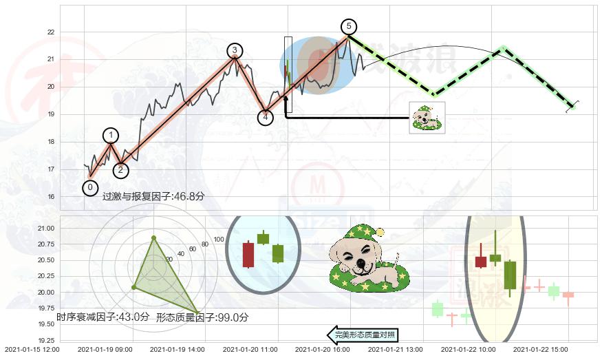 ➢ 🕰 价格走势在2021-01-22 10:00:00至2021-01-22 10:00:00期间形成看跌(高位倒锤头)流星线,残存影响值:-4.41