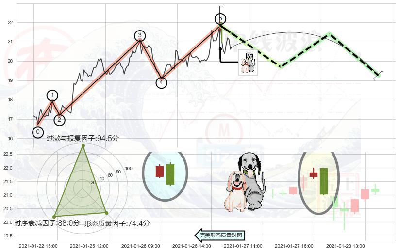 从2021-01-27 15:00至2021-01-28 16:00,共包含10个小时,阶段股价下跌-4.17%,阶段股价变动位移路程比: 1 : 3