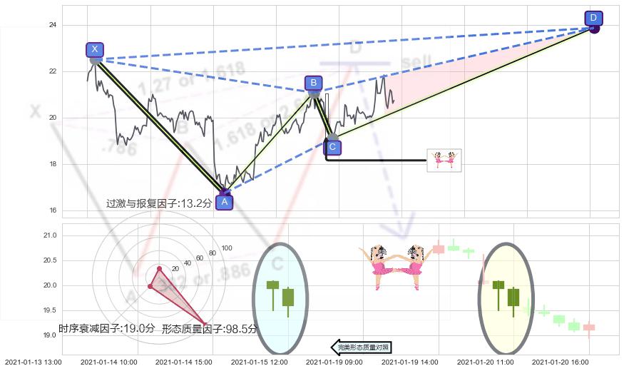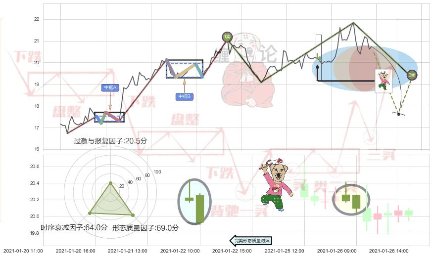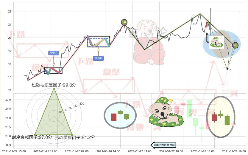 ➢ 🕰 价格走势在2021-01-22 10:00:00至2021-01-22 11:00:00期间形成射击之星形态,残存影响值:-3.87