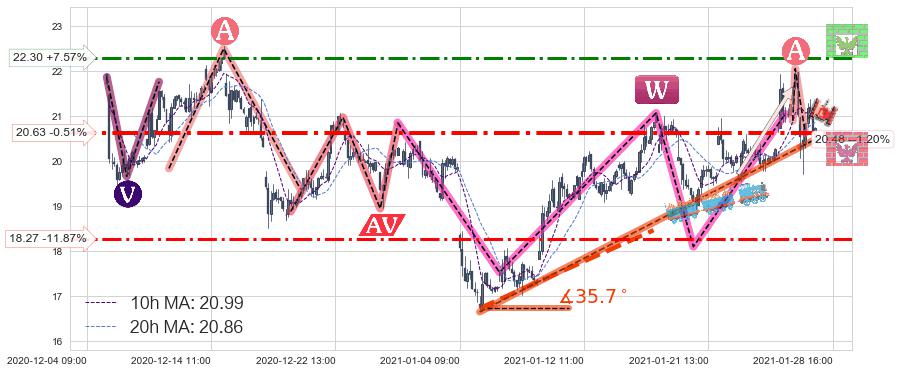 ♘ 阻力价格位22.30,可信任强度58.19%,距离最后交易2021-01-28 16:00形成的收盘价格20.73相差 +7.57%
