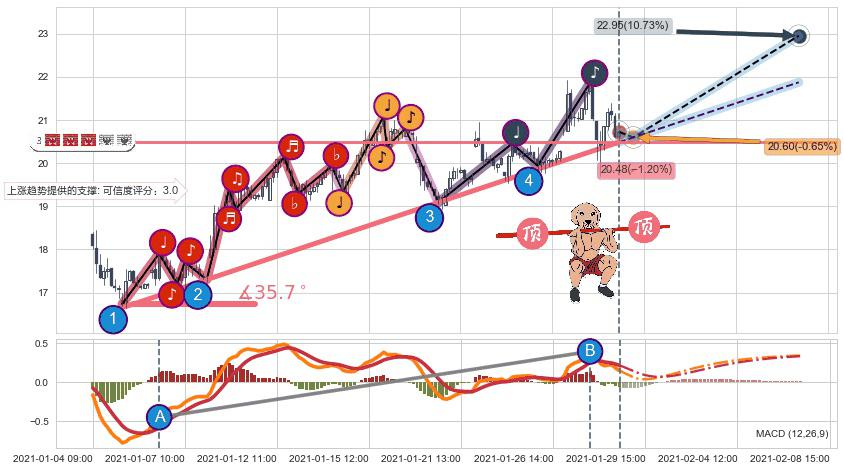 ♘ 支撑价格位20.63,可信任强度73.65%,距离最后交易2021-01-28 16:00形成的收盘价格20.73相差 -0.51%