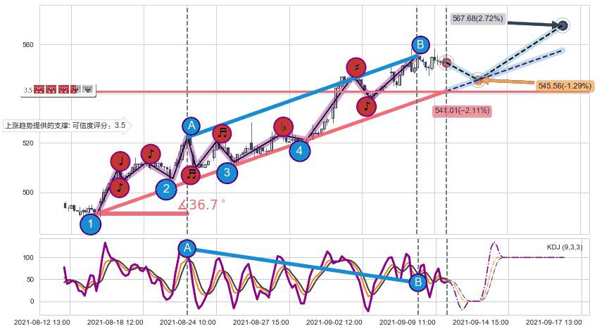 ➢ 预测:2021-09-13 12:00,【小幅回撤】稳定目前上涨趋势的前提下,预测价格:545.56