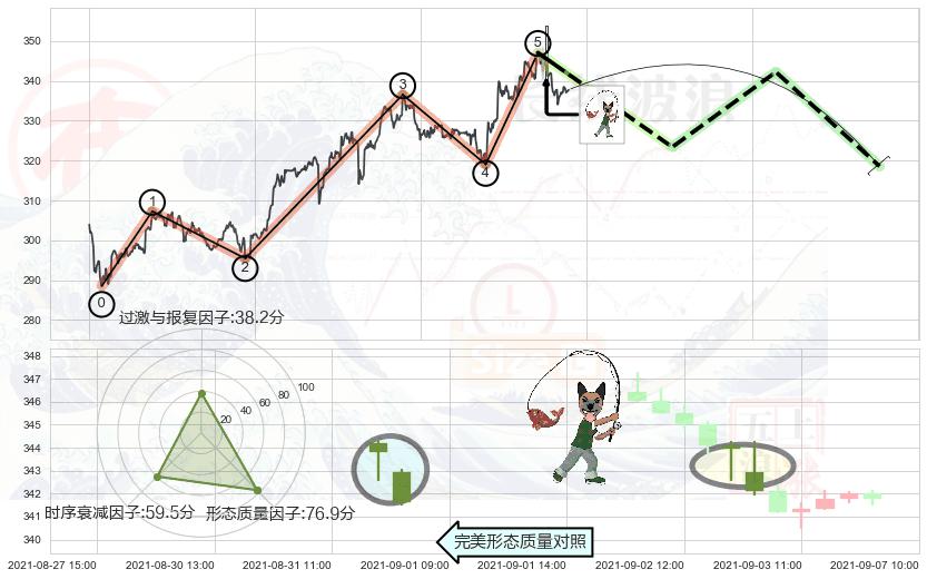 从2021-09-01 11:00至2021-09-09 15:00,共包含38个小时,阶段股价下跌-2.69%,阶段股价变动位移路程比: 1 : 3