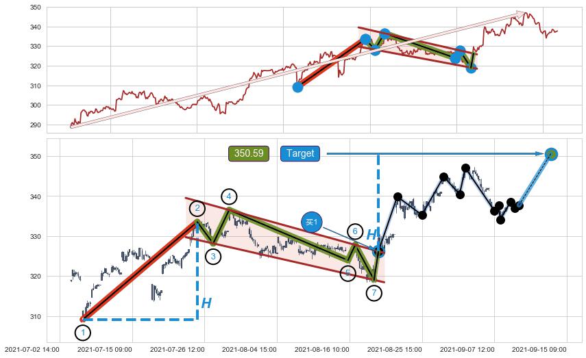 ➢ 【买1】: 激进型 买点 →(08-16:10: 324.63 )形成突破降🚩楔型【整理】形态