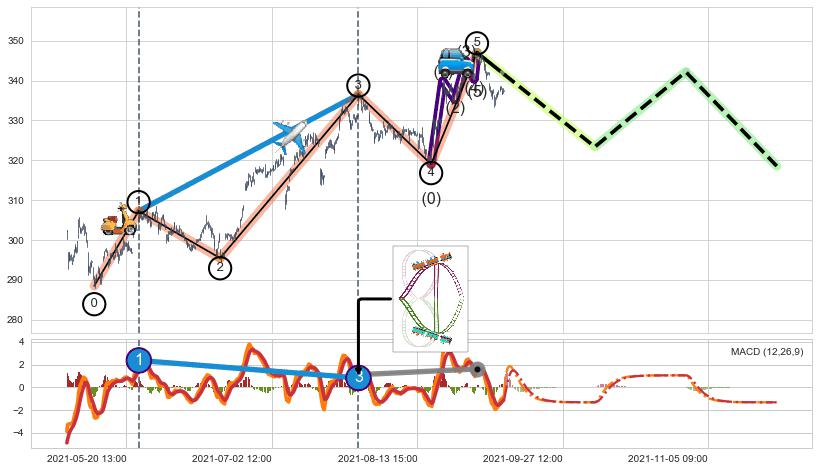 ➣ 下跌螺旋桨 + 波浪理论上涨浪:浪5回调拐点信号叠加后【目标达成率】低,【看空】信号叠加【存续影响大】