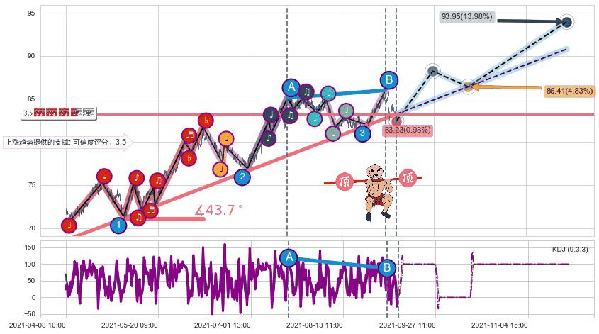 ➣ 预测:2021-10-12 09:00,【试探支撑】稳定目前上涨趋势的前提下,预测价格:86.41