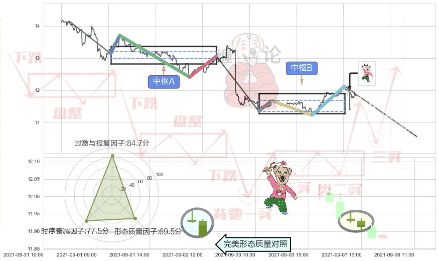 ➣ 缠论中枢点:下降缠中枢B破位后距离1买距离较远,随后猜想后续持续下跌(趋势跟踪)