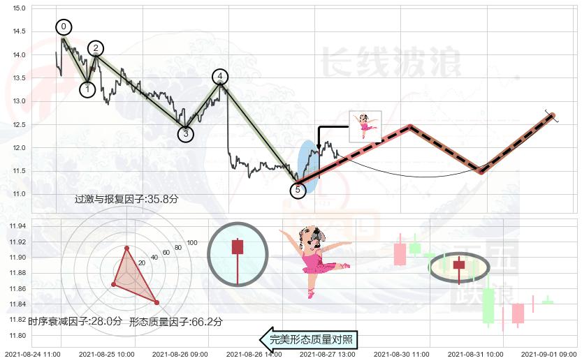 ➢ 🕰 价格走势在2021-08-30 13:00:00至2021-08-30 13:00:00期间形成单针探底(定海神针),残存影响值:3.13