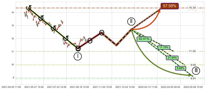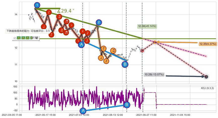 ♘ 阻力价格位13.60,可信任强度88.48%,距离最后交易2021-09-09 14:00形成的收盘价格11.83相差 +14.95%