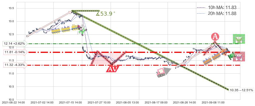 ♘ 阻力价格位12.14,可信任强度48.19%,距离最后交易2021-09-09 14:00形成的收盘价格11.83相差 +2.62%