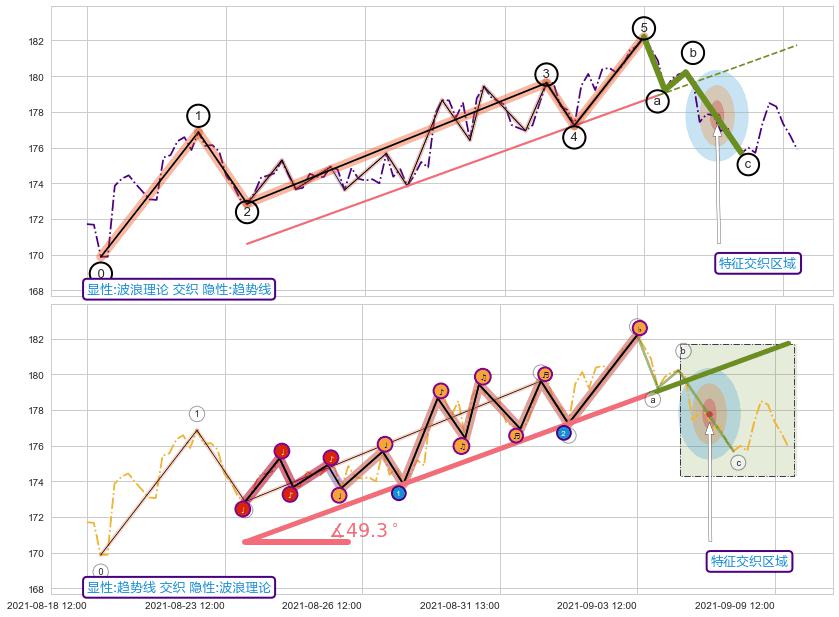 ➢ 趋势线属【短级别信号事件】波浪理论属【长级别信号事件】长短周期组合信号事件, 短长事件长度比23.99%