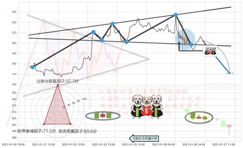 ➢ 🕰 价格走势在2021-01-25 00:00:00至2021-01-27 00:00:00期间形成三只乌鸦,残存影响值:-2.86