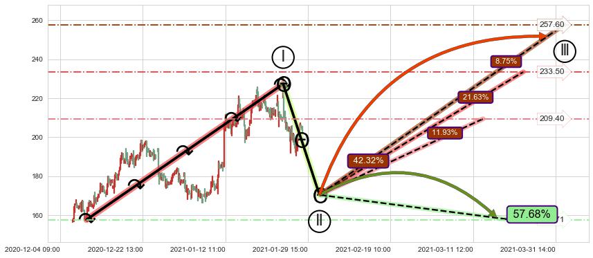 ➢ 循环浪继续向上【最高】位置(04-02:10, 257.60),匹配聚类样本比例20.69%, 可能性概率8.75%