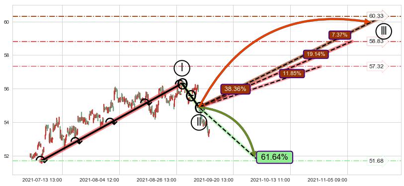 ➢ 循环浪继续向上【最低】位置(10-26:10, 57.32),匹配聚类样本比例30.88%, 可能性概率11.85%