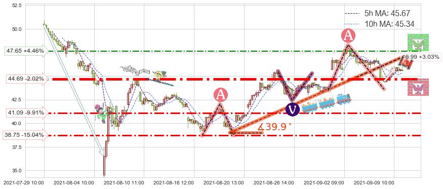 ♘ 支撑价格位44.69,可信任强度86.88%,距离最后交易2021-09-09 14:00形成的收盘价格45.61相差 -2.02%