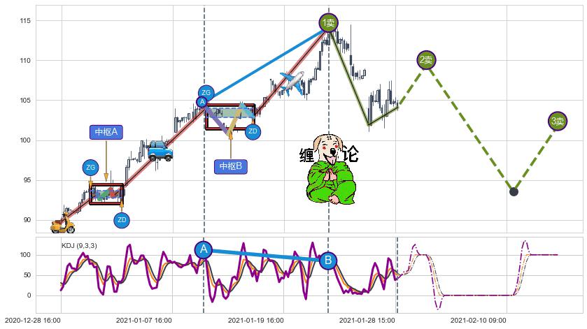 ➣ 【已完成】缠论 起点:12-28:16,完成第1中枢A,完成第2中枢B,终点:01-22:14,缠论共121交易小时