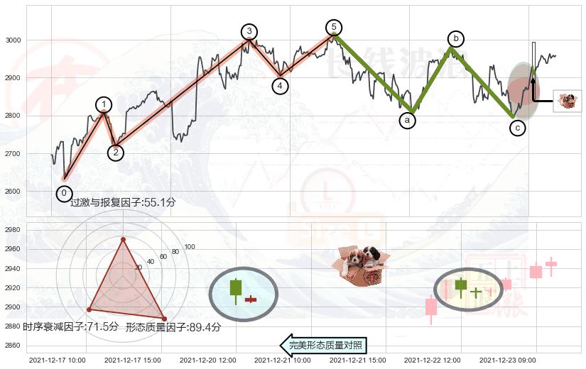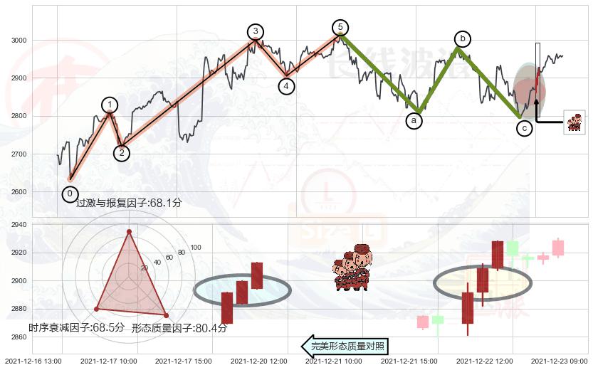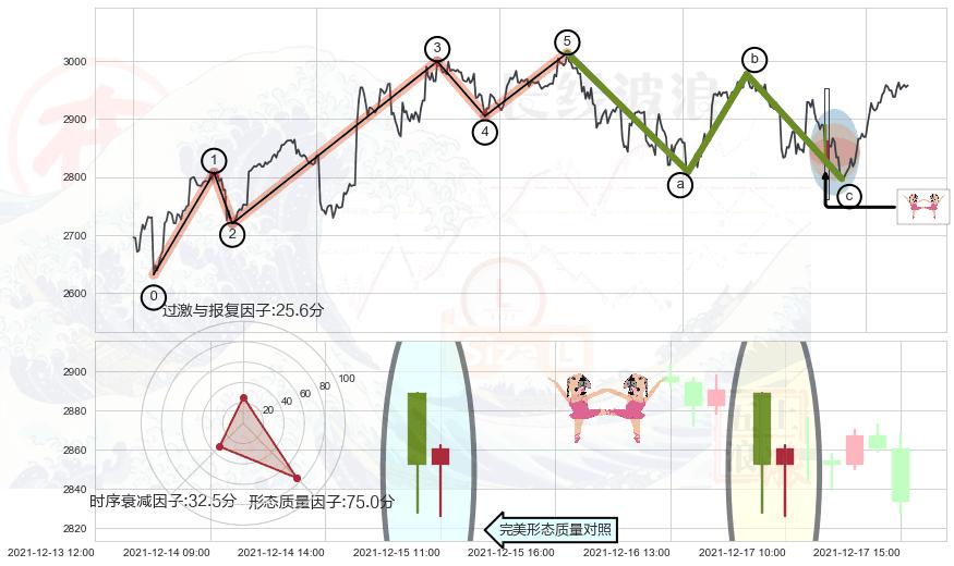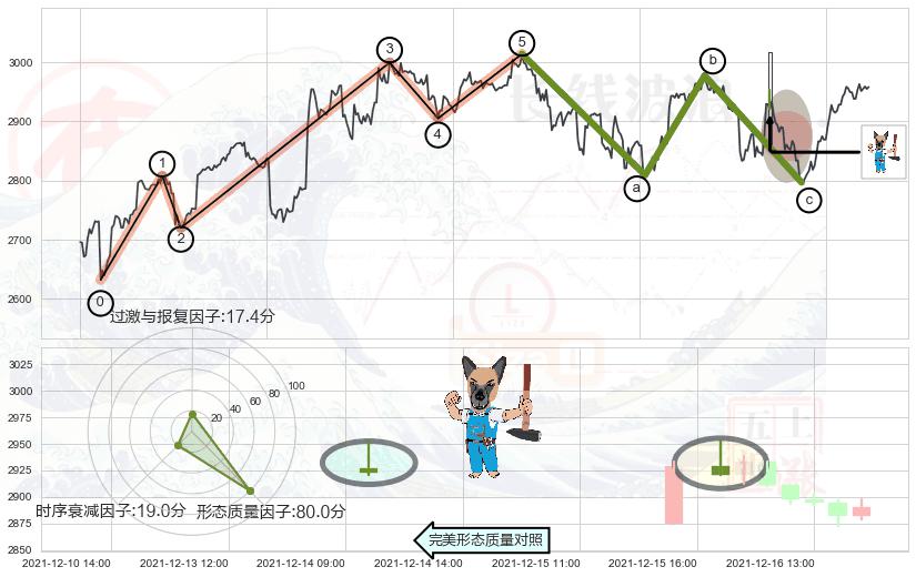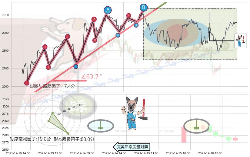 ➢ 🕰 价格走势在2021-12-17 09:00:00至2021-12-17 10:00:00期间形成双针探底,残存影响值:2.76