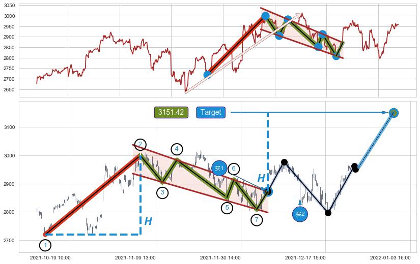 ➣ 最小中继整理涨幅→𝐇: 279.42 (𝐇旗杆的长度:旗杆起点→顶点)