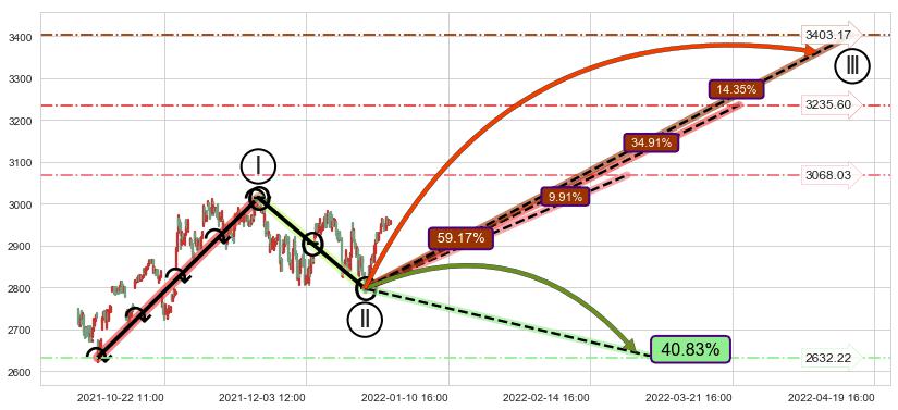 ➣ 循环浪继续向上【平均值】位置(03-23:10, 3235.60),匹配聚类样本比例59.00%, 可能性概率34.91%