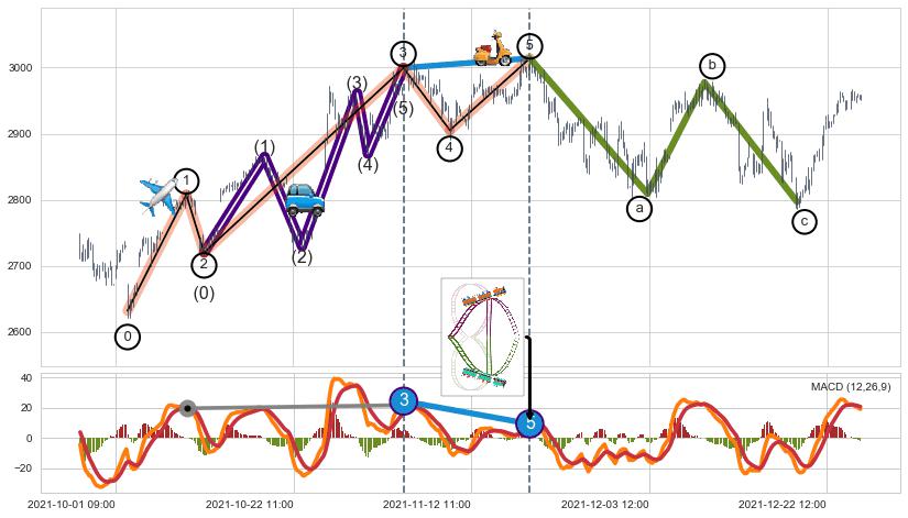 ➣ 第一, 三, 五浪上涨动能逐渐【衰弱变小】,趋势呈现不稳迹象