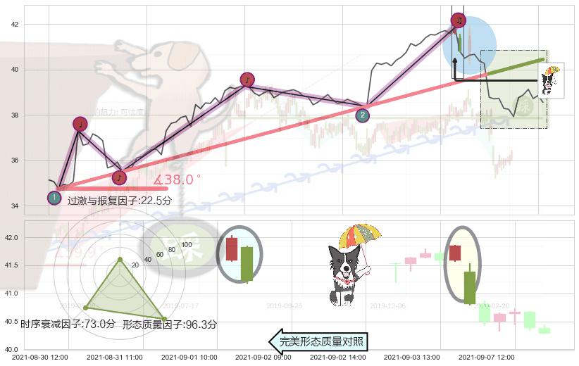 ➢ 2021-08-17 11:00-2021-09-08 09:00上升趋势存在反转[风险],其原上升趋势的支撑位(40.45)已破位[强阻力信号],原上升趋势角度: 38.0˚