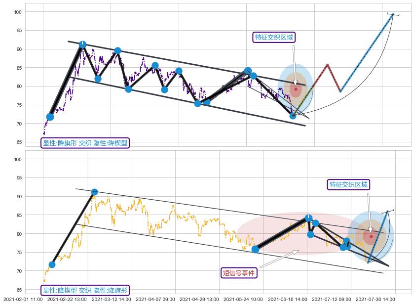 ➢ 降楔型属【短级别信号事件】降旗形属【长级别信号事件】长短周期组合信号事件, 短长事件长度比29.62%