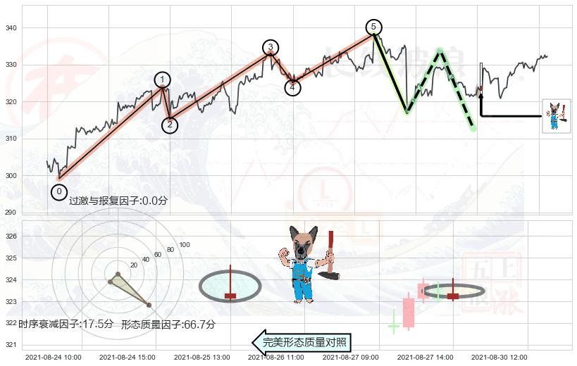 ➢ 循环浪继续向上【最低】位置(10-27:15, 334.45),匹配聚类样本比例28.26%, 可能性概率11.92%