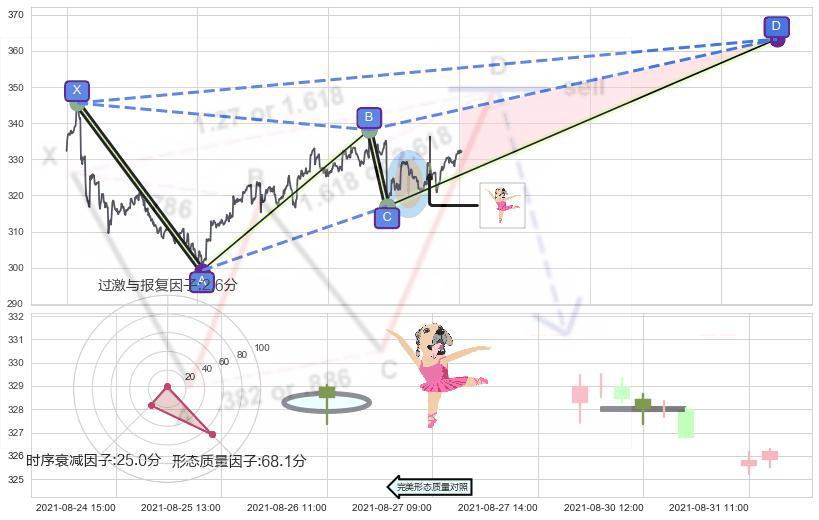 ➣ D点拟合预测价格363.29,距离最后交易收盘价格332.22相差 +9.35%