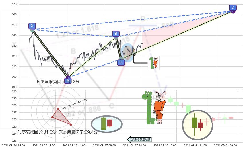 ➢ 谐波蝴蝶:猜想c点下沉接近b点后强支撑来临拉升上涨(均值回复)