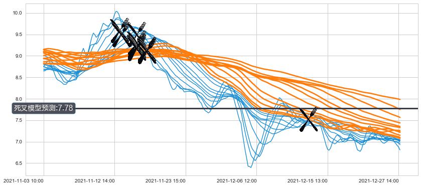 📉 多条均线基于【死叉历史模型】预测最低波谷价格的平均值: 7.78