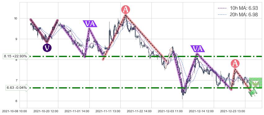 ♞ 10小时均线:6.93,20小时均线:6.98→ 快线<慢线