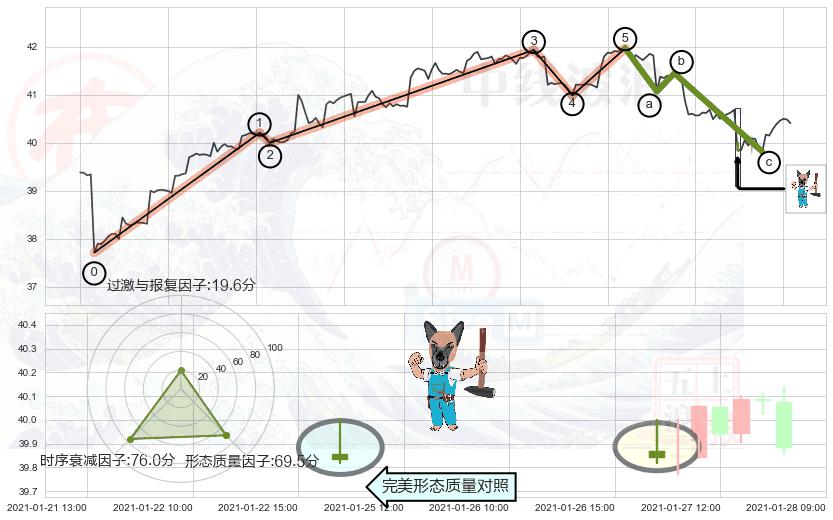 从2021-01-20 16:00至2021-01-27 16:00,共包含40个小时,阶段股价下跌-5.21%,阶段股价变动位移路程比: 1 : 2
