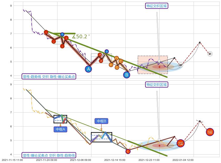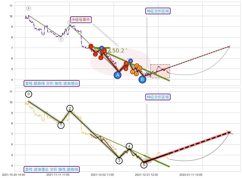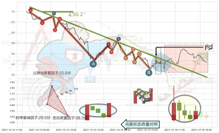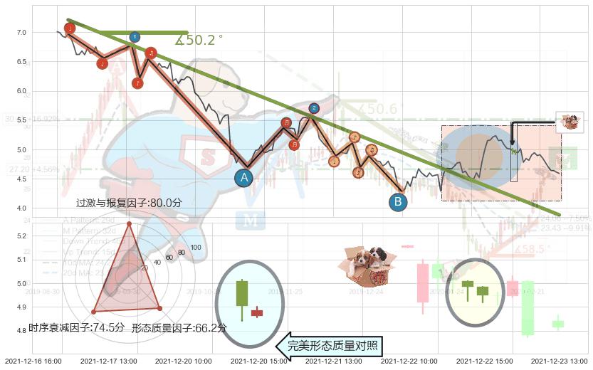 从2021-11-19 14:00至2021-12-15 11:00,共包含122个小时,阶段股价下跌-45.81%,阶段股价变动位移路程比: 1 : 3,下跌趋势角度: 50.2
