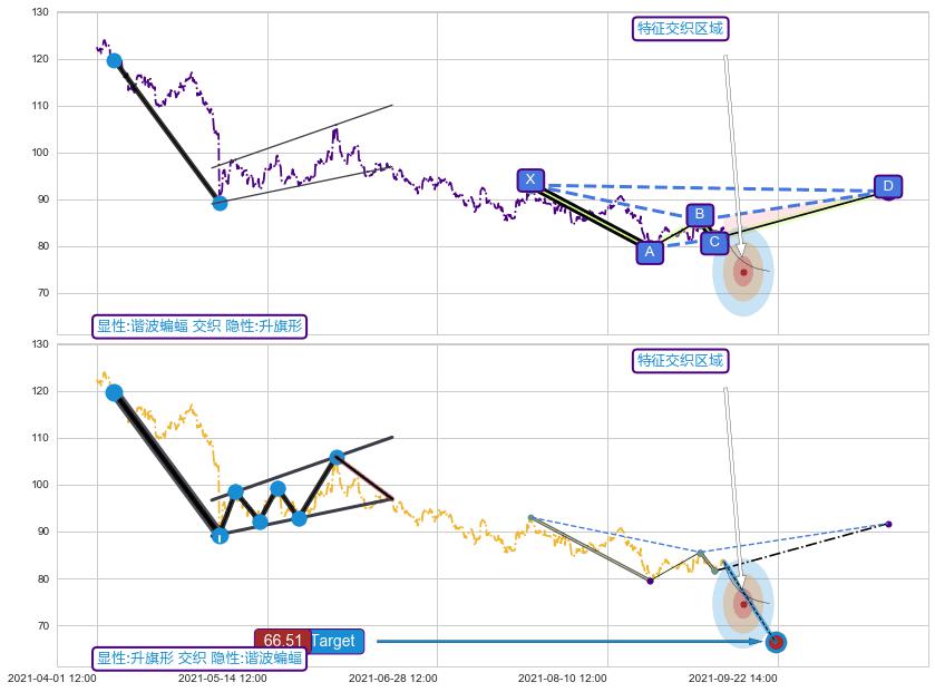➢ 谐波蝙蝠与升旗形信号事件周期长度级别相同,同周期信号事件