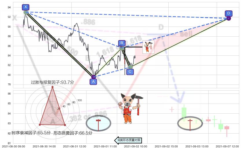 ➢ 未完成【蝙蝠】形态起点X: 07-21:13, 已到达C点: 09-08:09, 预测最终D点: 10-19:11, 共420交易小时