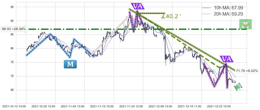 ♘ 阻力价格位86.93,可信任强度83.14%,距离最后交易2021-12-27 16:00形成的收盘价格67.71相差 +28.39%