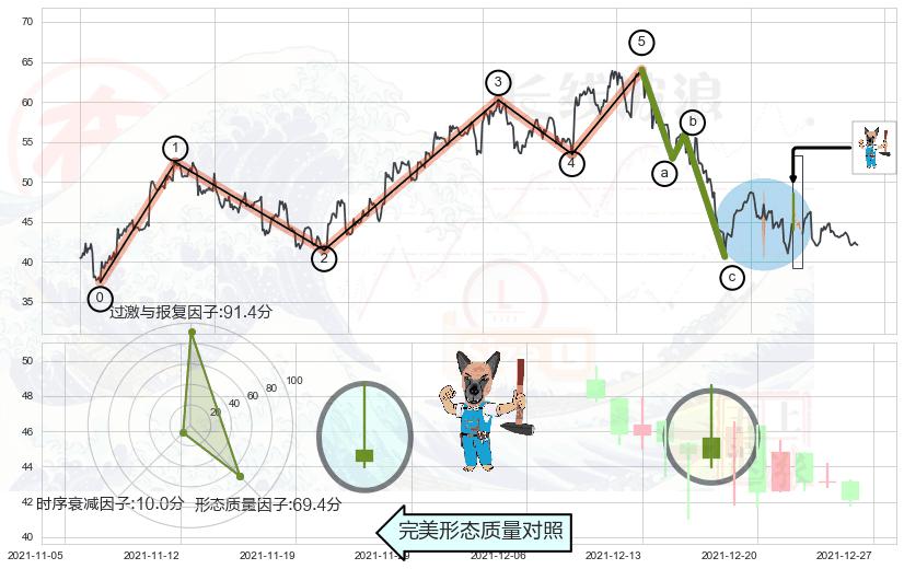 ➢ 顶部尽头线(下山虎) 🔜 波浪理论击穿破位C点继续下跌 综合量化分数:48.70 【中性】