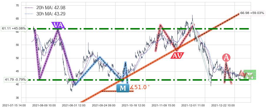 ♞ 20小时均线:42.98,30小时均线:43.29→ 快线<慢线