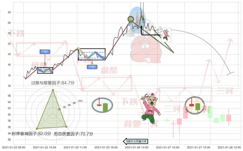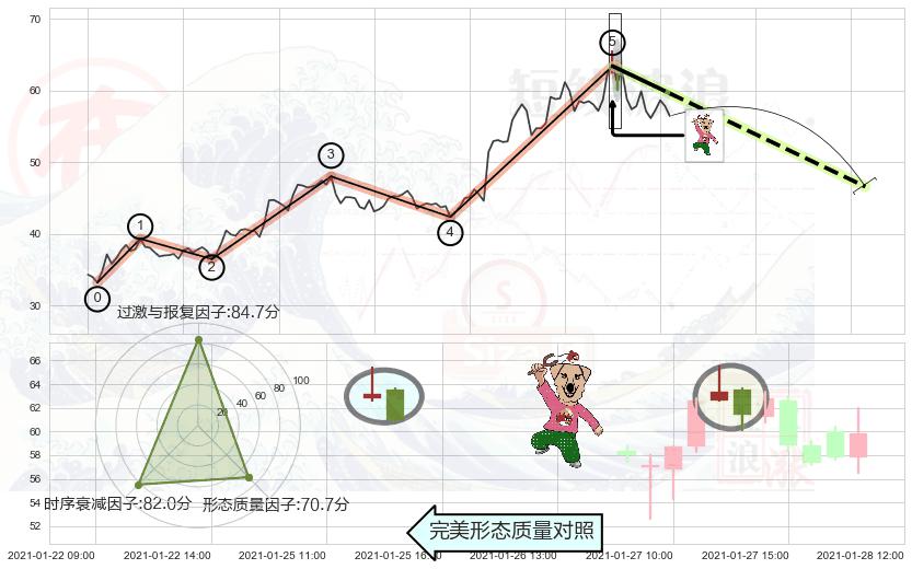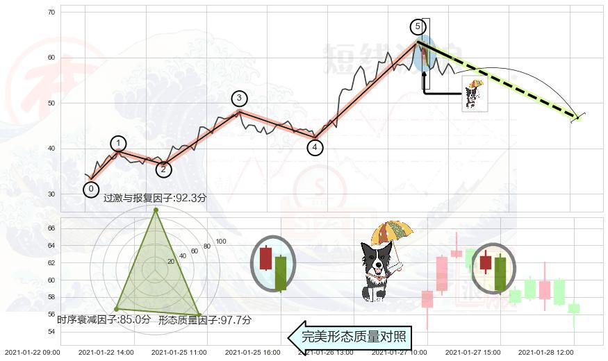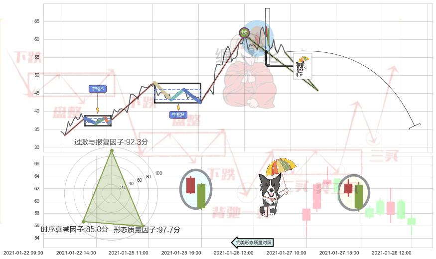 ➢ 🕰 价格走势在2021-01-27 12:00:00至2021-01-27 13:00:00期间形成射击之星形态,残存影响值:-5.99