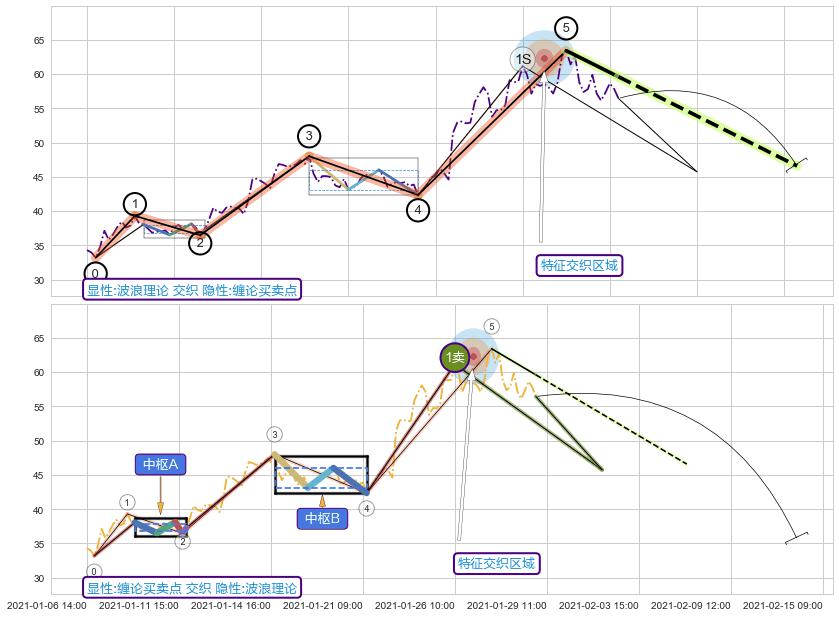 ➣ 缠论买卖点:上升缠中枢AB形成后猜想拐点1卖已到达,猜想后续持续下跌(均值回复)